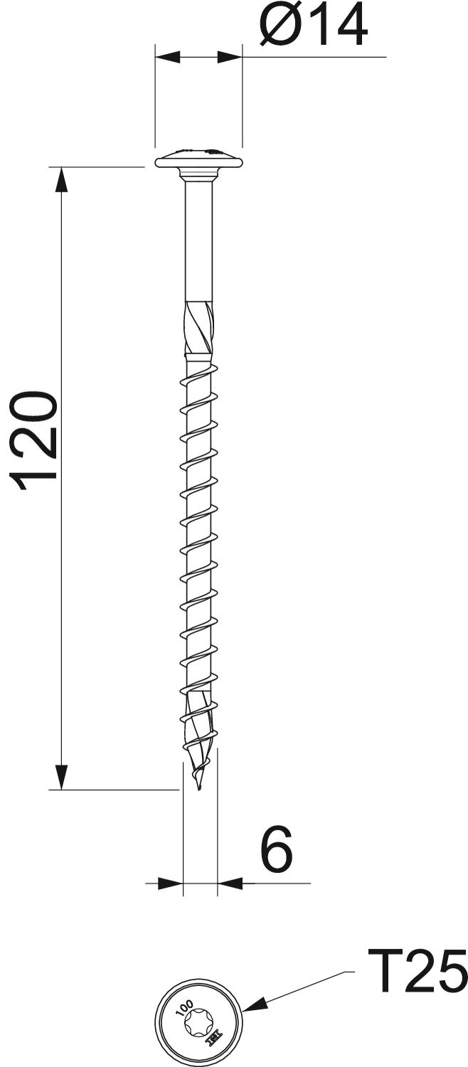 Platkopschroef houtconstructies 6x120 staal verzinkt VVE=100 OBO