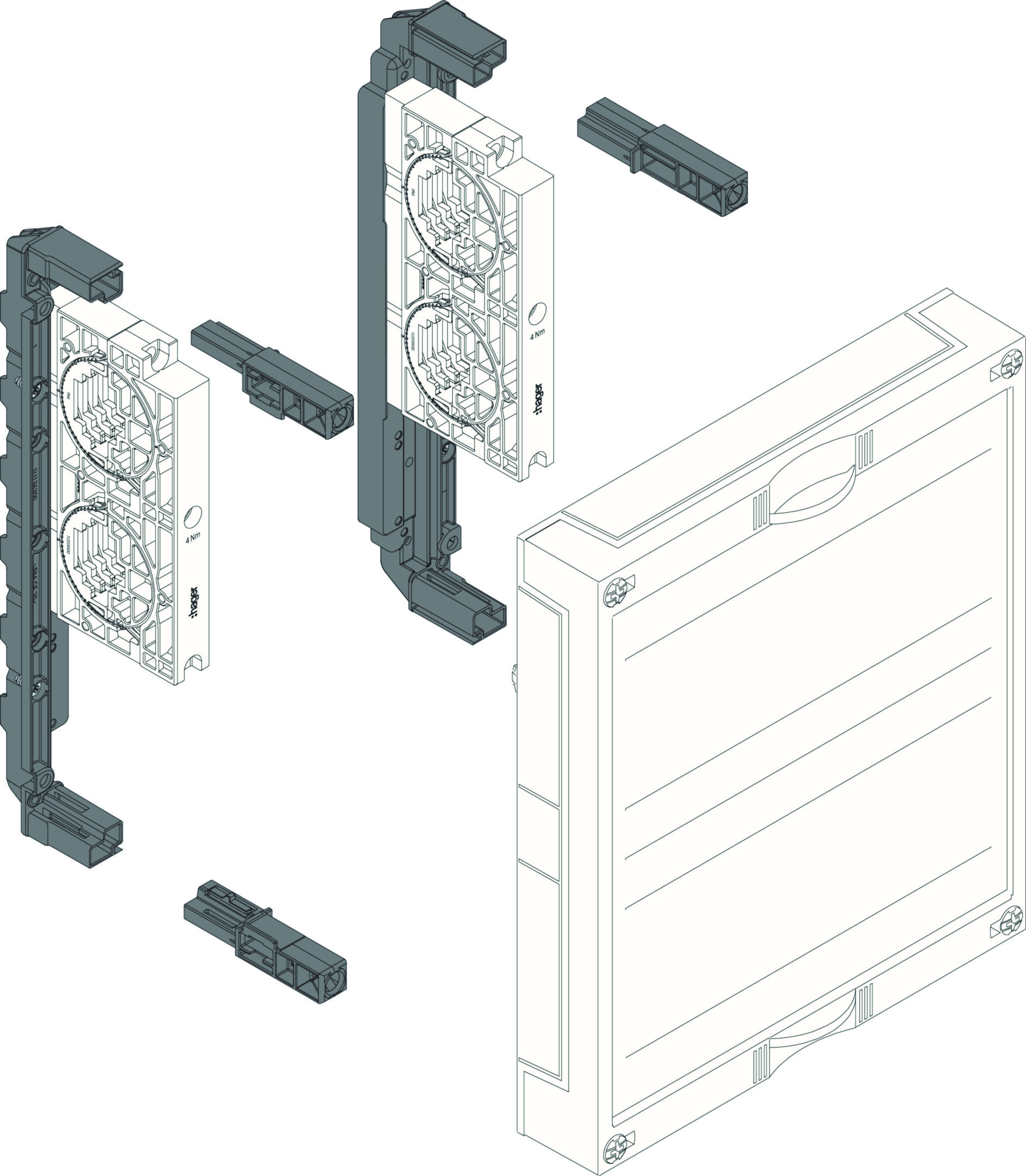 Bouwsteen 300x250 mm met 2-polige raildrager PE/ N draaibaar Hager