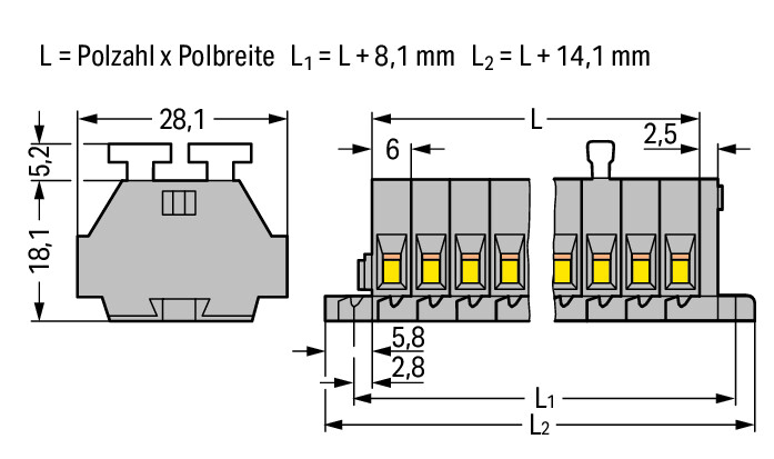 2-draads klemmenstrook beide zijden +knop 261-104 VVE=50 Wago
