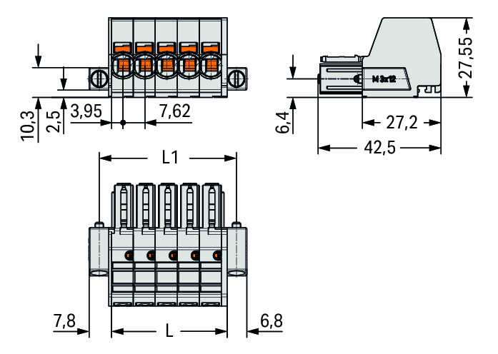 1-draads FE steker 10mm² li.grijs 831-3103/107-000 VVE=24 Wago