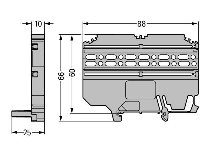 Multimontageadapter voor FE+male stekers 25 mm breed VVE=25 Wago