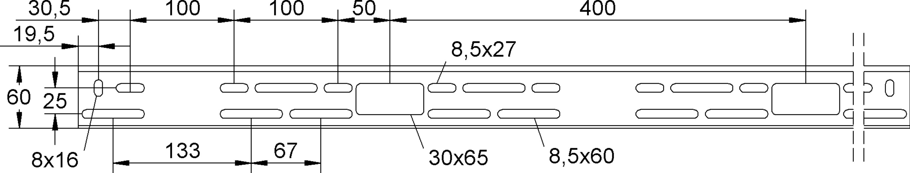 - Veilige werklast volgens IEC 61537 met steunafstand 2,5 m: 200 N/m