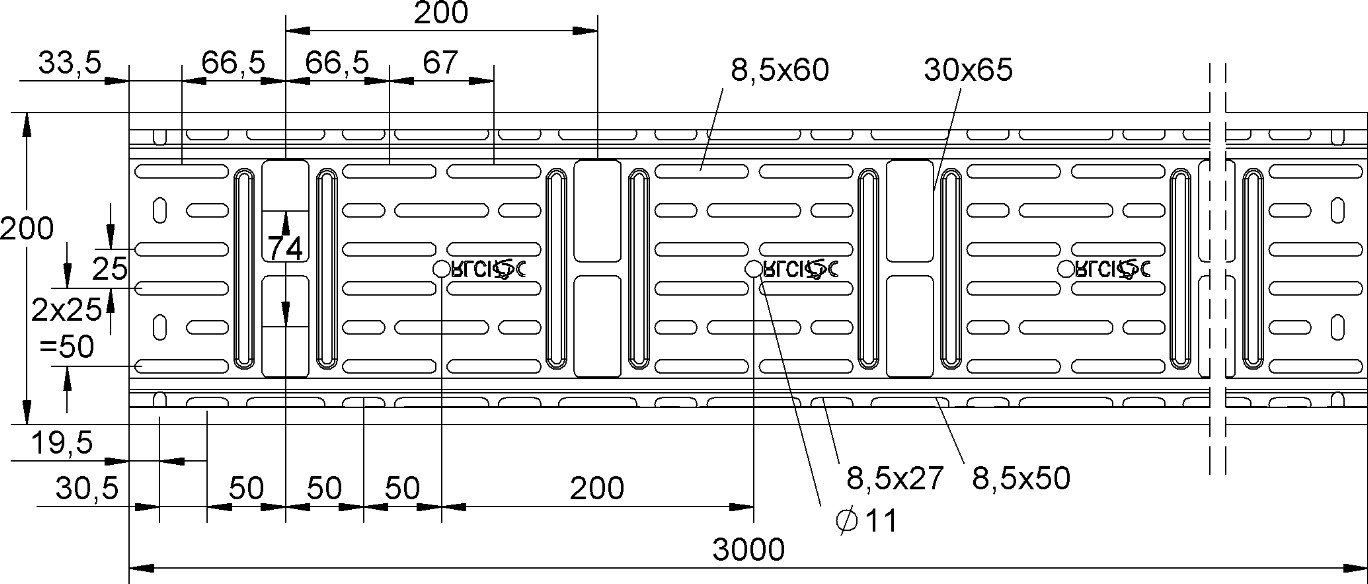 Lengte a 3m. Verdeelgoot + 2xRVC60 RLCI 60.200 Niedax Group
