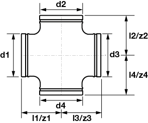 - Uitwendige buisdiameter aansluiting 1: 114,3 mm