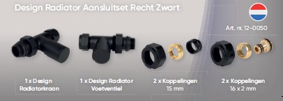 Aansluitset recht PP Radiator zwart incl. adapter M24 15mm + M24 16x2.0 Ponnoplastic