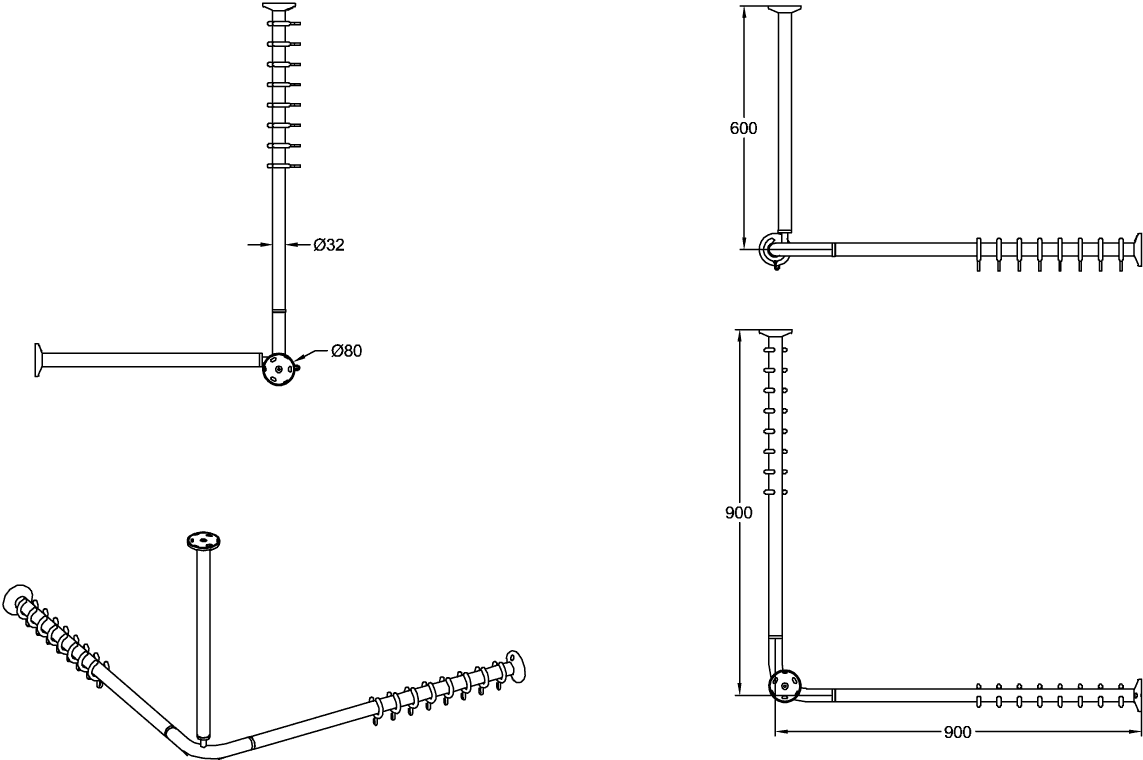 ViCare gordijnstang 900x900mm wit (inkortbaar) met plafondsteun Villeroy & Boch