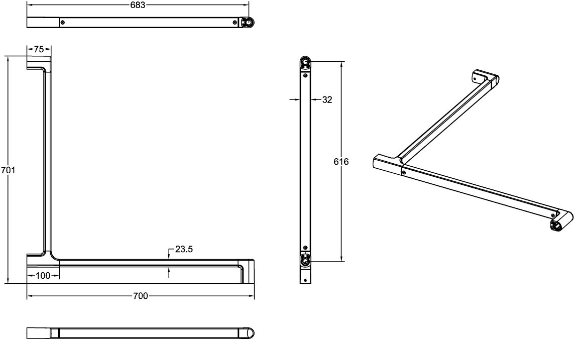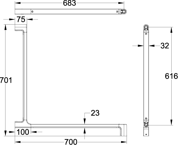 ViCareDESIGN hoekwandbeugel 90° 700x700mm chroom Villeroy & Boch