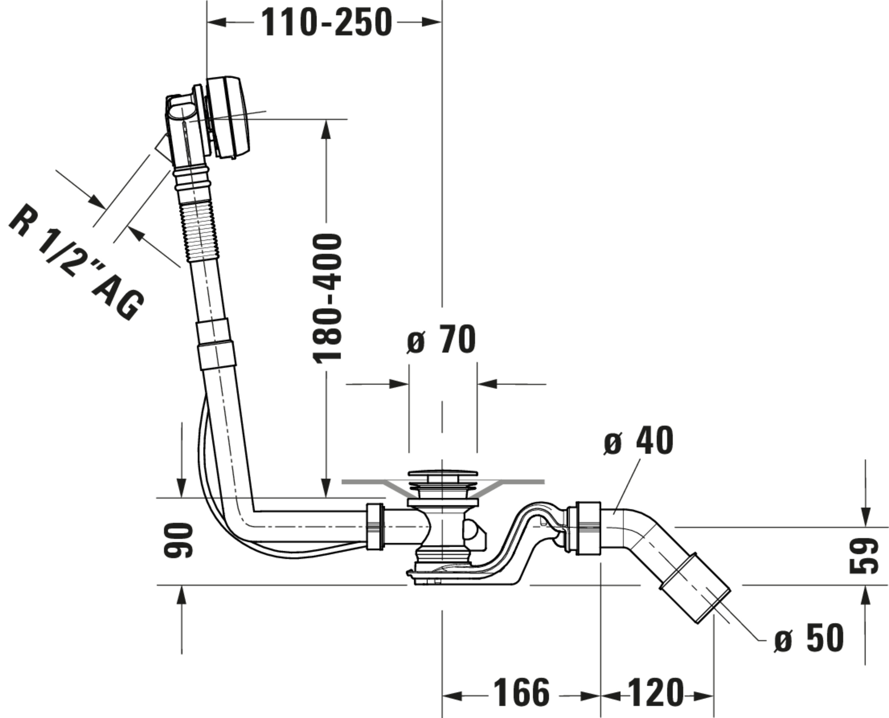 Af- en overloopgarnituur m inlaat Chroom 280x80x450mm 792201000001000 Duravit