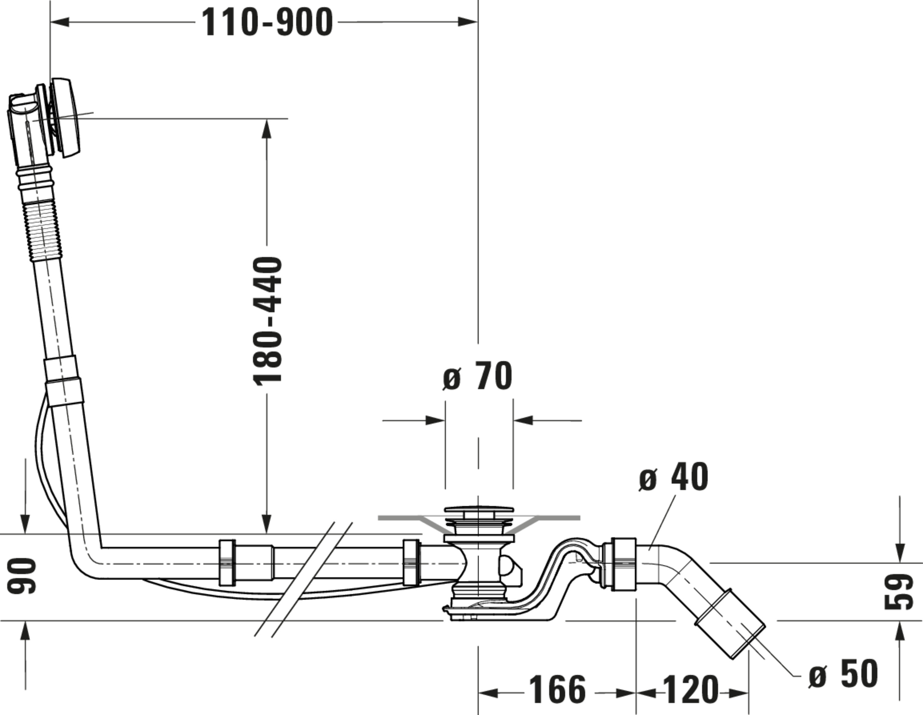 Af- en overloopgarnituur Chroom 800x80x450mm Duravit