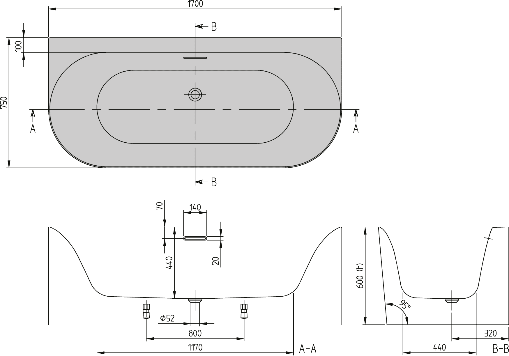 Loop & Friends Back-to-wall ligbad wit 170x75cm Villeroy & Boch