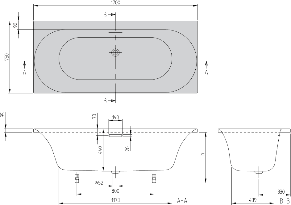 - Bodemlengte (lig-lengte): 1173 mm