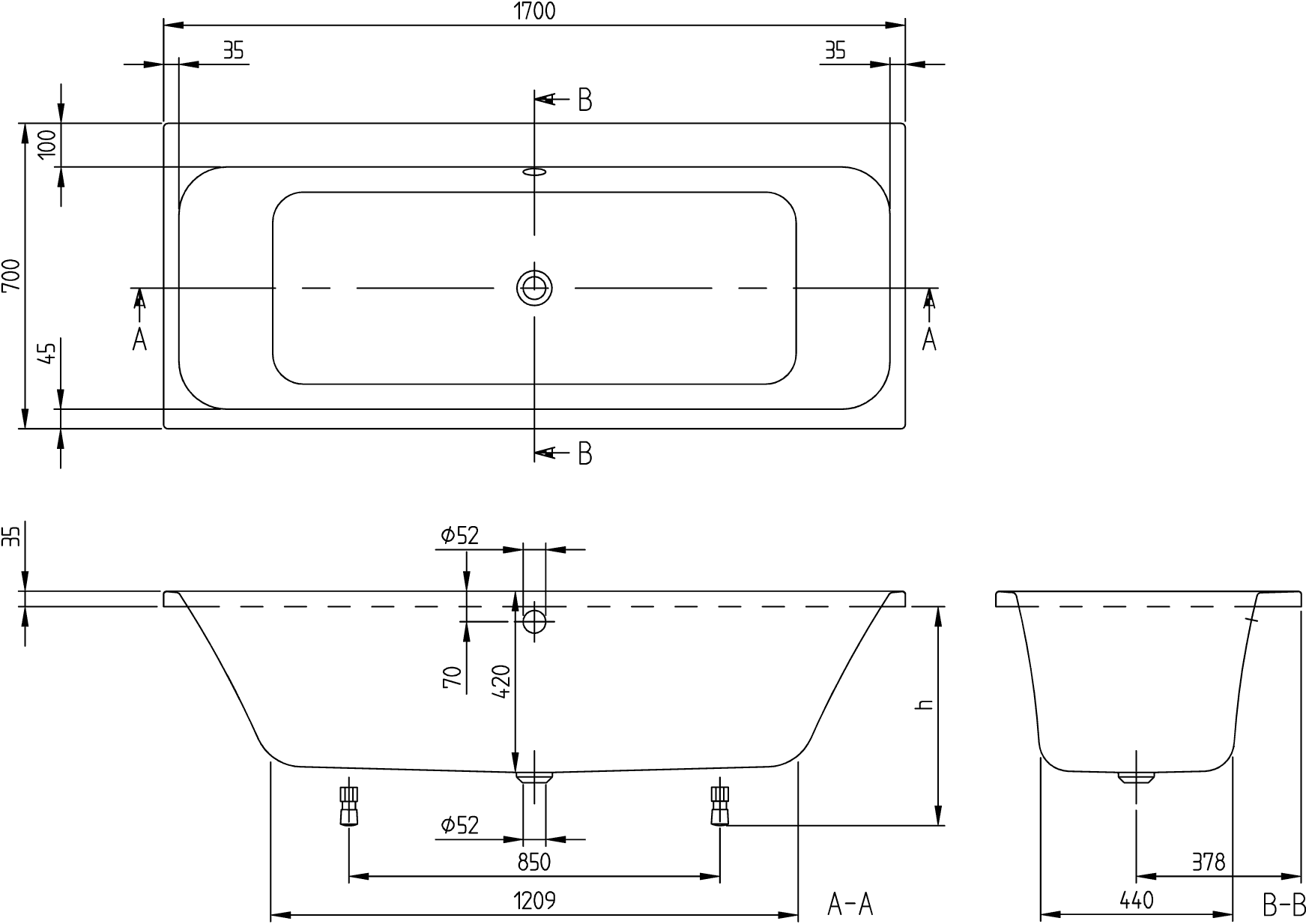 Rechthoekig bad 700x1700mm White Alpine Architectura Villeroy & Boch