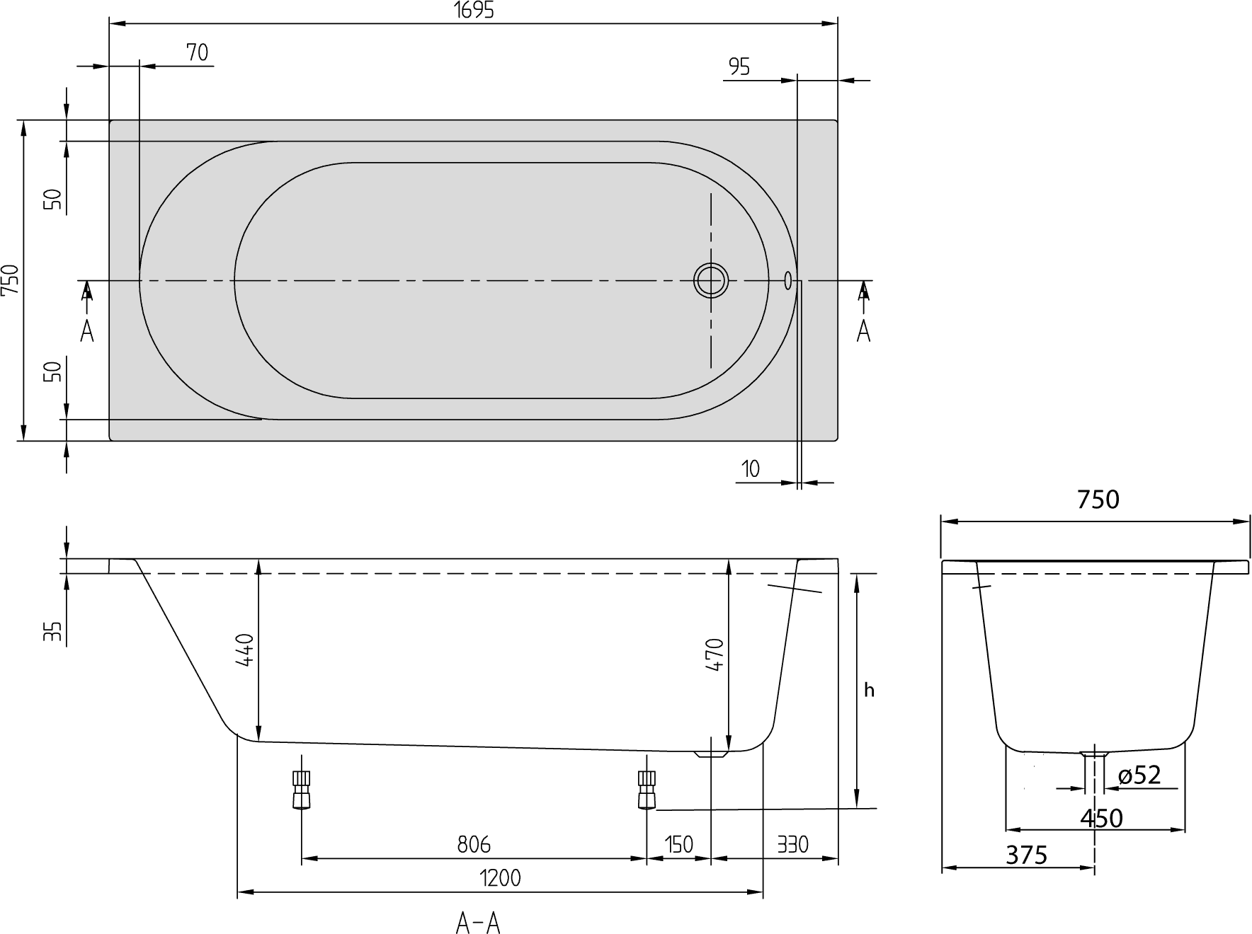 - Plaats afvoergat: Voeteinde