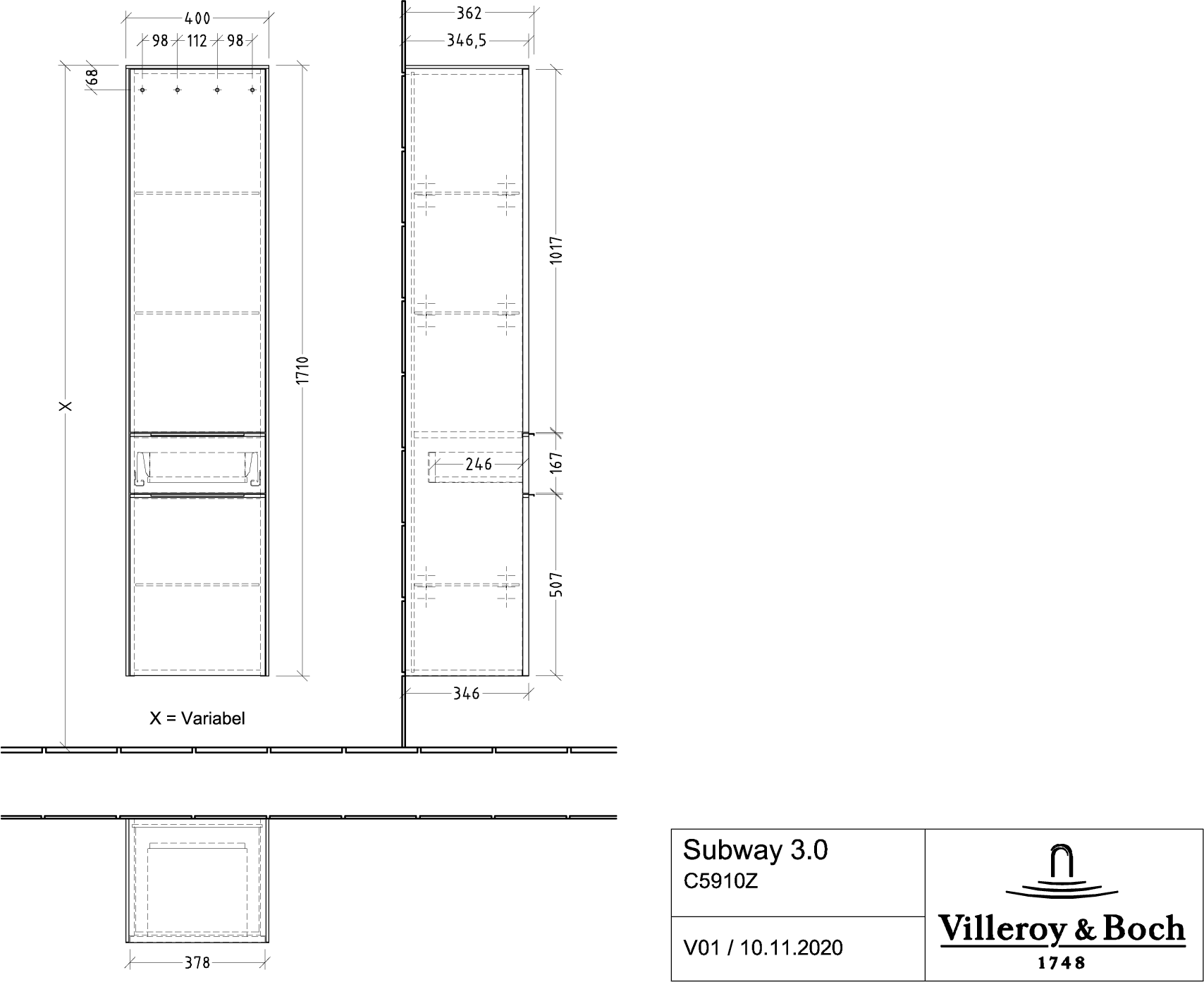 Hoge kast Subway 3.0 400 x 1710 x 362 mm Graphite C59102VR Villeroy & Boch