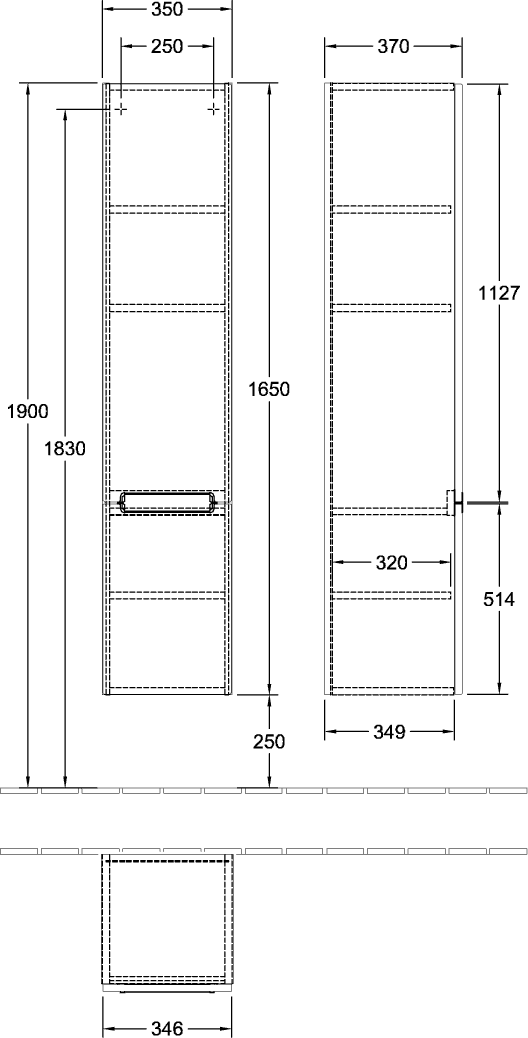 Subway 2.0 hoge badkast 350x1650x370mm wit hggl. 2xdeur LI Villeroy & Boch