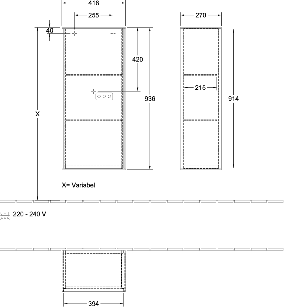 Finion zijkast 418x936x270mm mat zwart LI LED verl. Villeroy & Boch