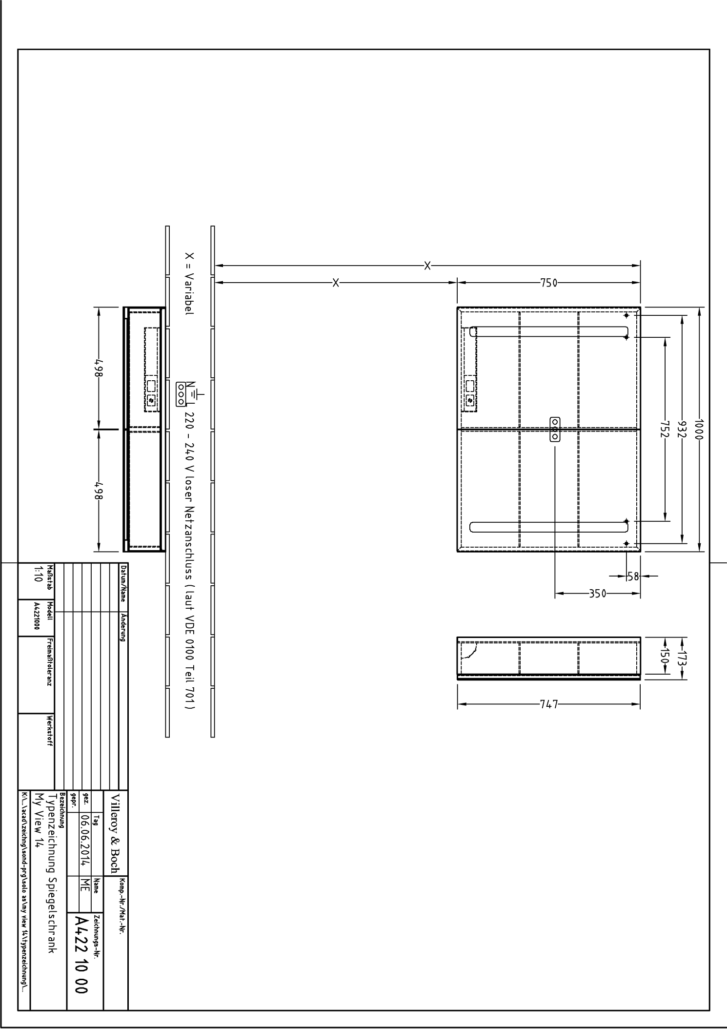 Spiegelkast My View 14 1000x750x173mm A4221000 Villeroy & Boch