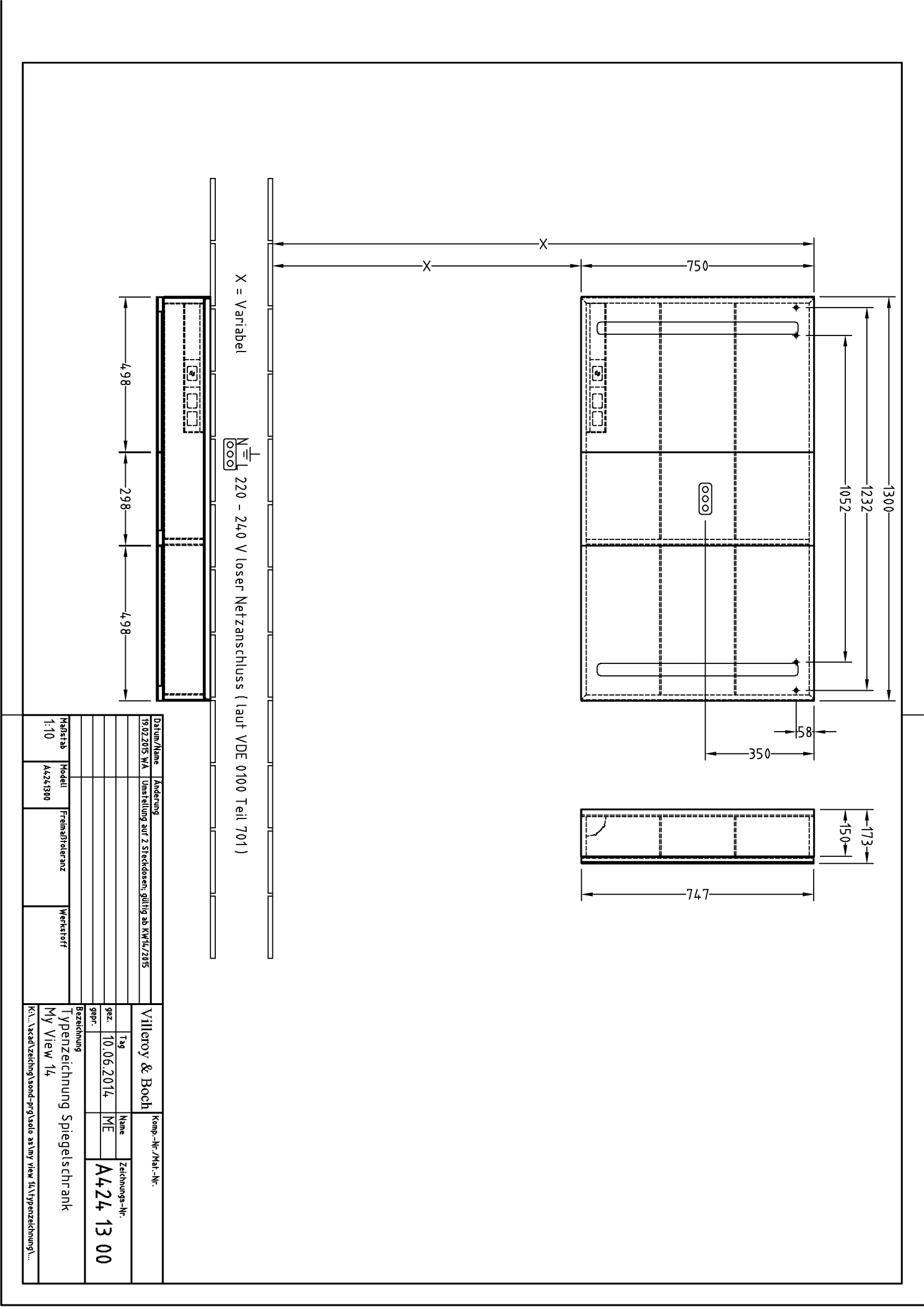 My View 14 spiegelkast 1300x750x173mm alu 3xdeur LED verl. Villeroy & Boch