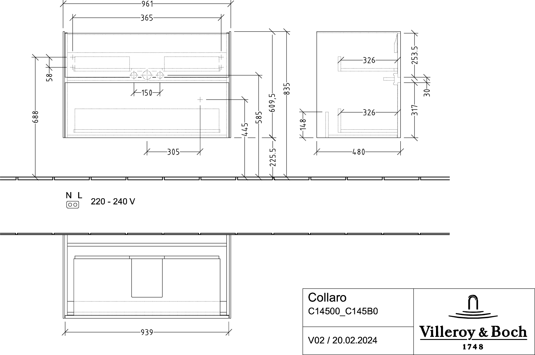 Wastafelonderkast Collaro 961x610x480mm Sto.Oak C14500RK Villeroy & Boch