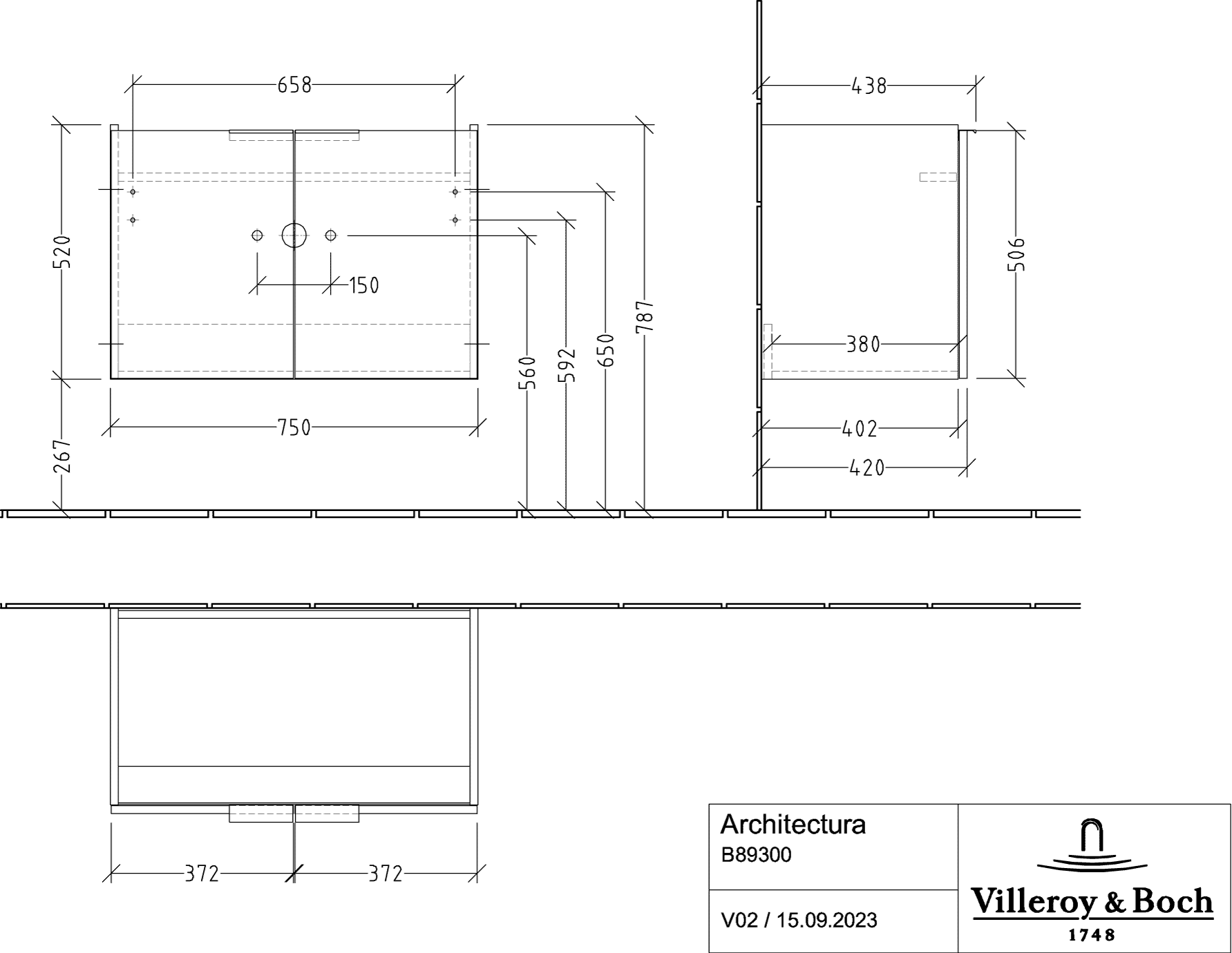 Wastafelonderkastkast ARCHITECTURA 750x520x420mm wit mat greep alu. glans Villeroy & Boch