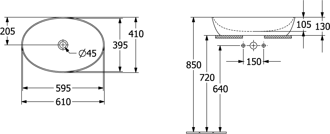 Opzetwaskom ovaal ARTIS 610x410mm wit Alpin C+ wit zonder overloop Villeroy & Boch
