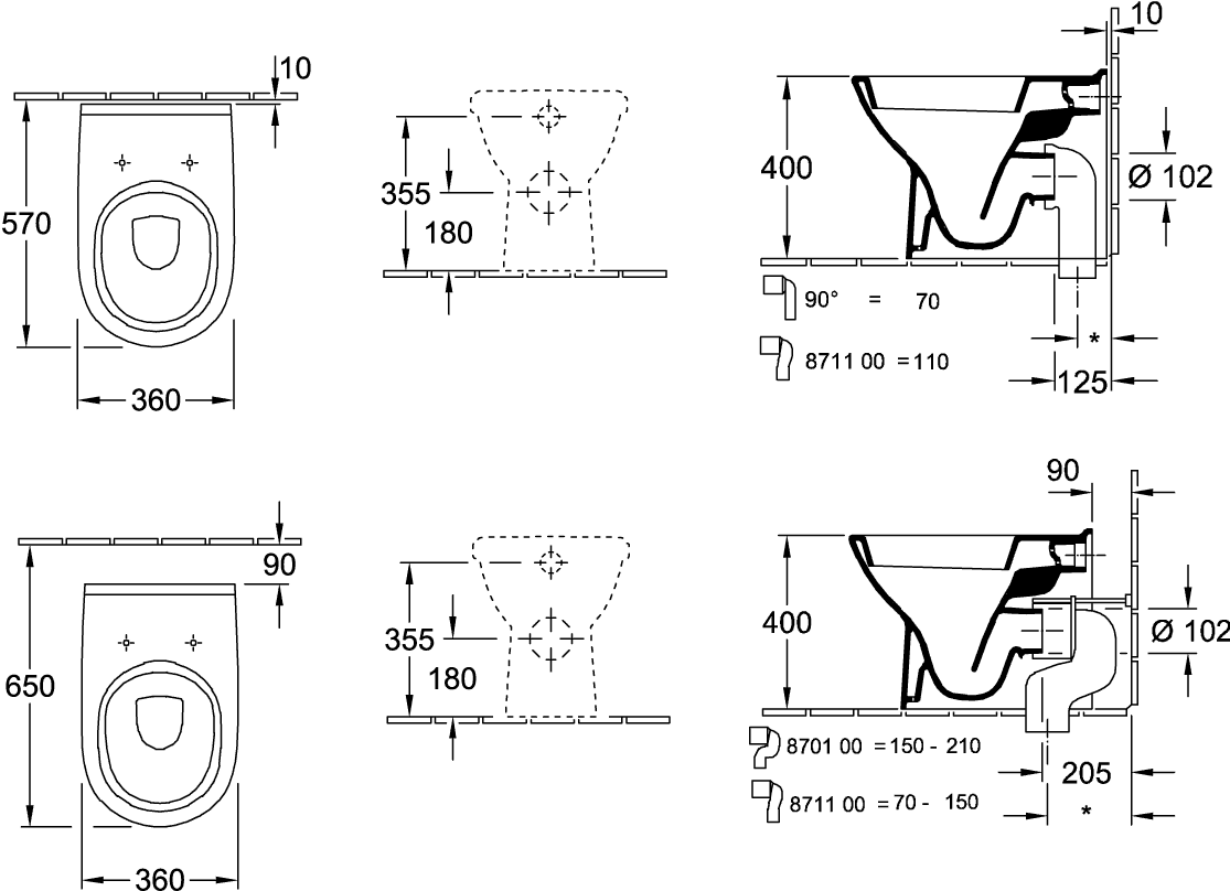 O.novo Back to Wall staand closet vario wit diepspoel Villeroy & Boch