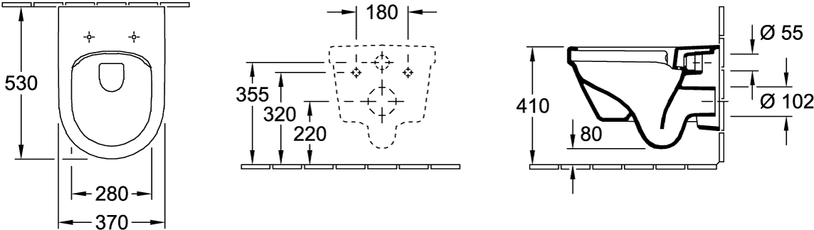 - Hartmaat bevestiging wandcloset: 180 mm