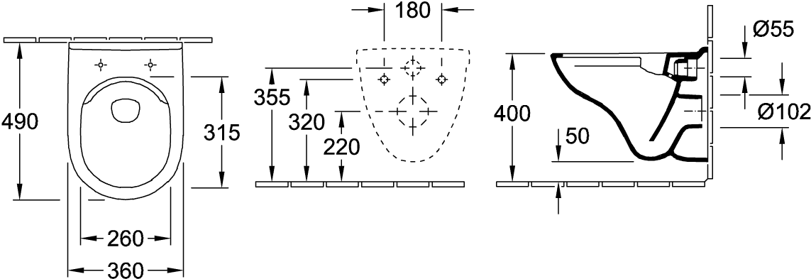 - Hartmaat bevestiging wandcloset: 180 mm