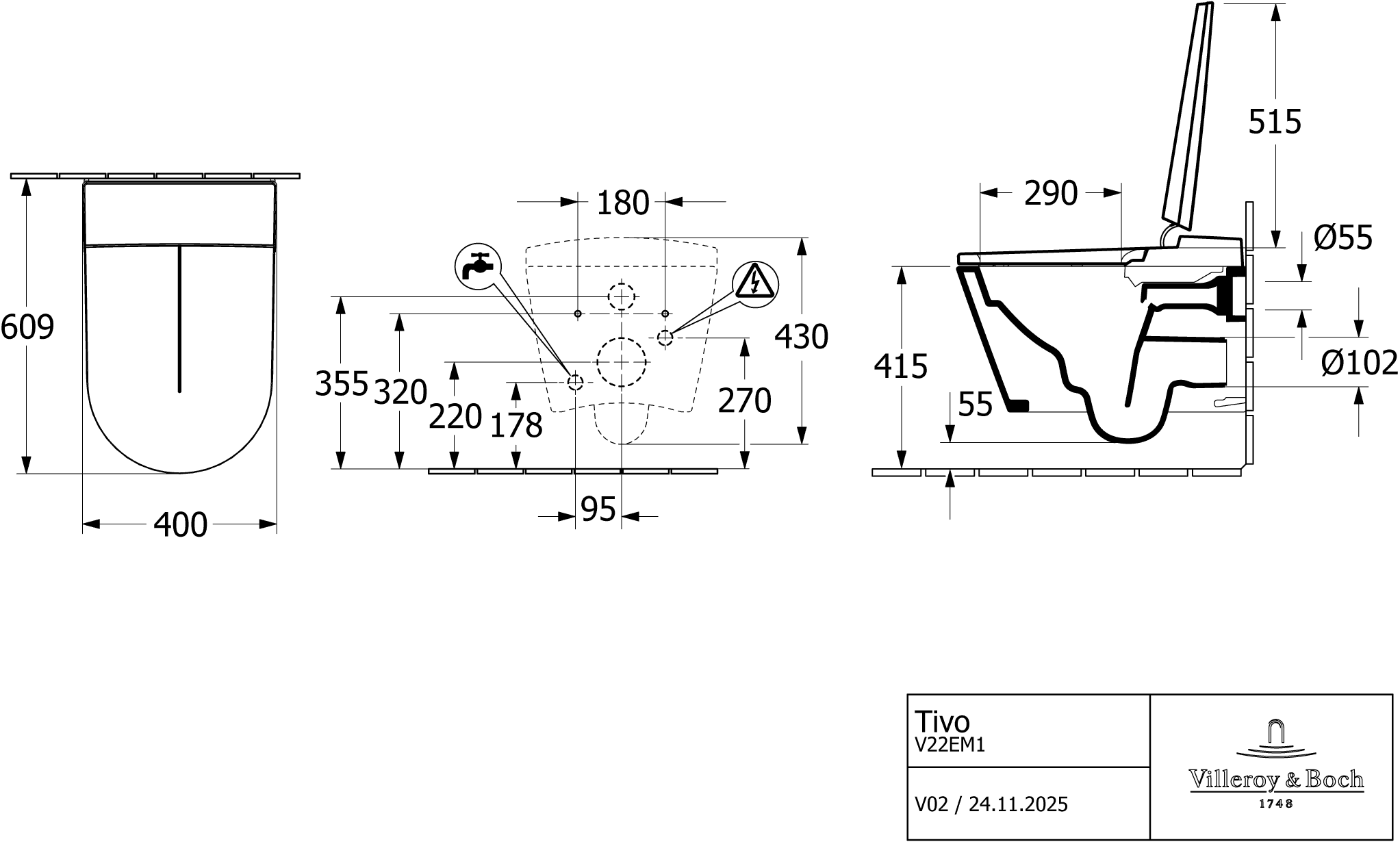 Tivo douchecloset wandmodel ViClean 400x430x609mm White Alpine Villeroy & Boch