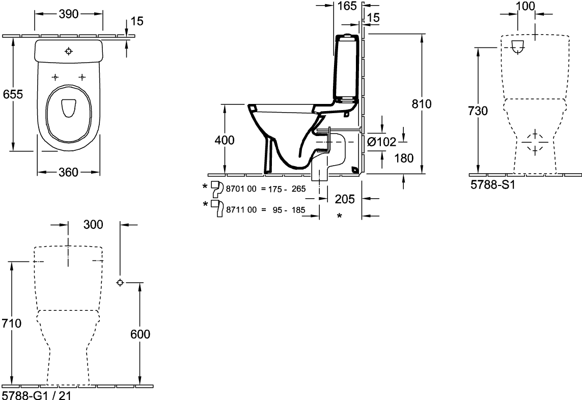 O.novo Compact closetreservoir wit zij-/achtetoevoer Villeroy & Boch
