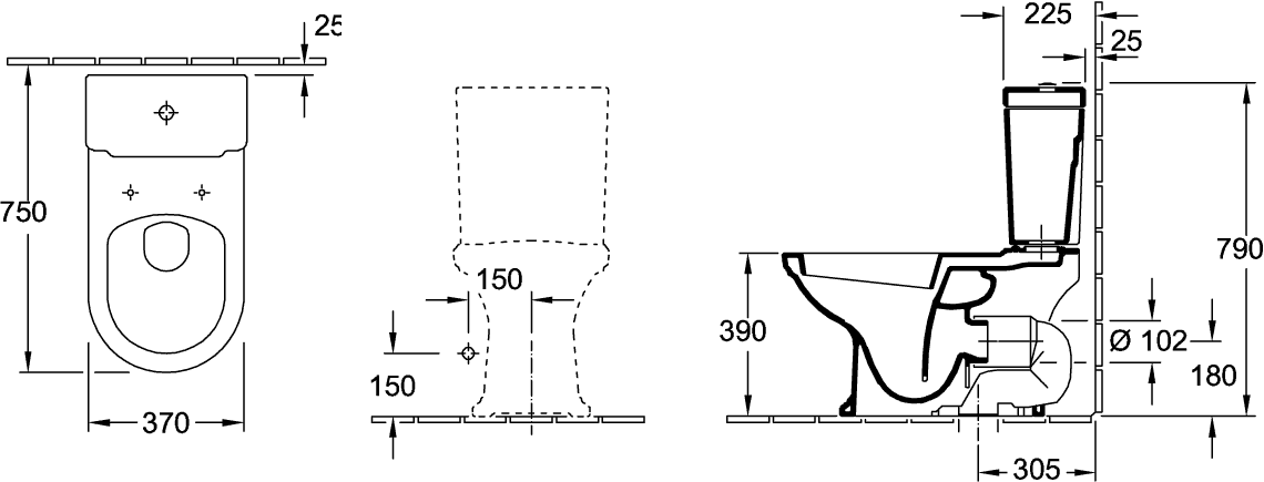 Closet voor combinatie Hommage 370x725mm 666210R1 Villeroy & Boch