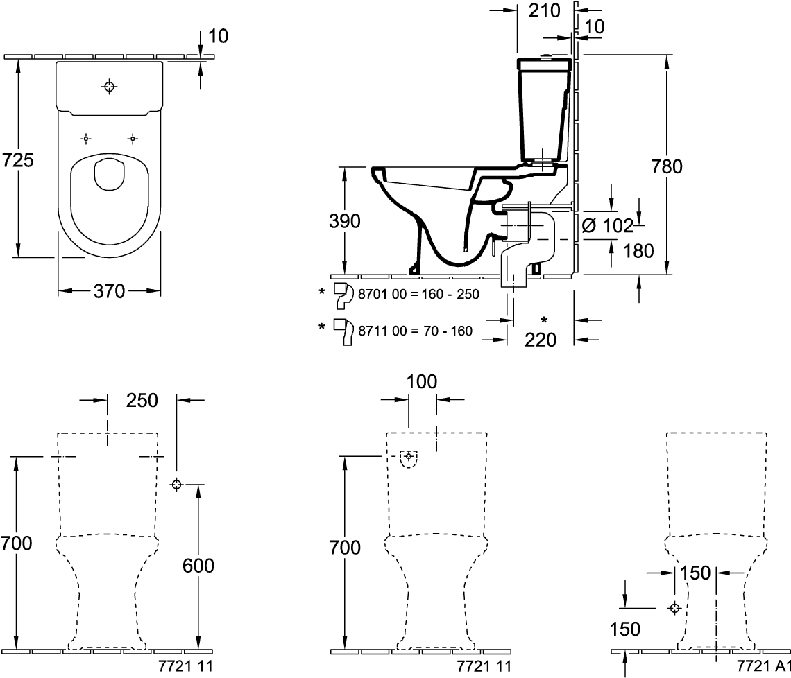 - Diepte: 725 mm
