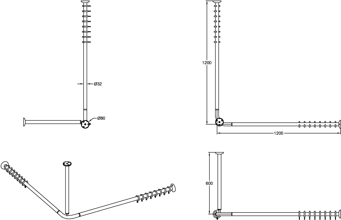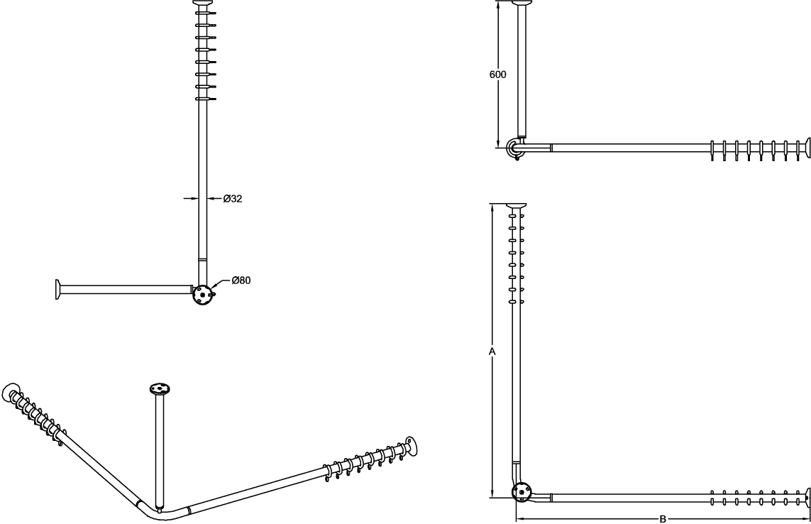 ViCare gordijnstang 1200x1200mm wit (inkortbaar) met plafondsteun Villeroy & Boch