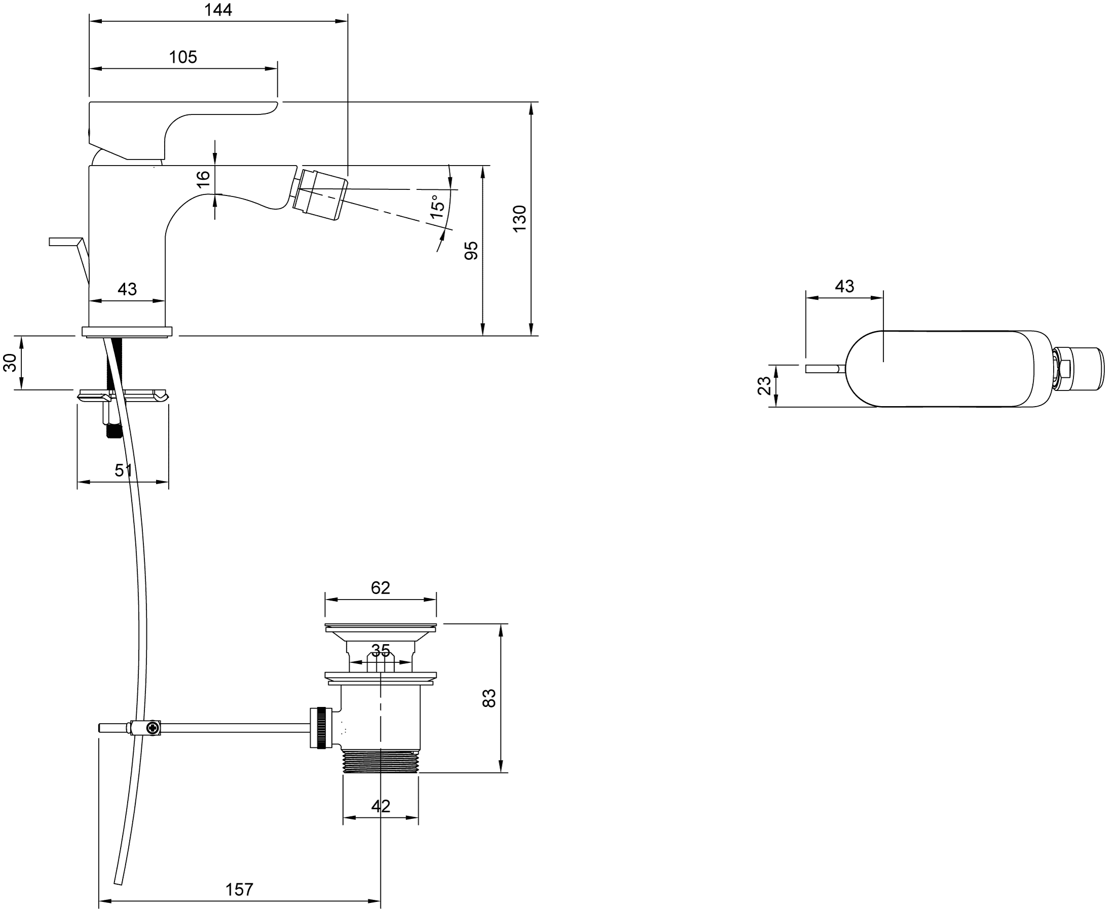 - Opbouwhoogte onderkant kraanmondstuk: 75 mm