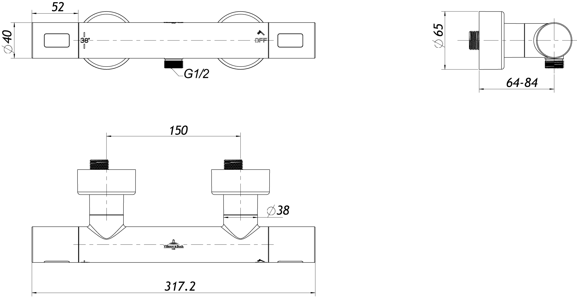 Douchethermostaat Universal Taps & Fittings Chrome hoh 150mm incl. S-koppelingen TVS00001700061 Villeroy & Boch