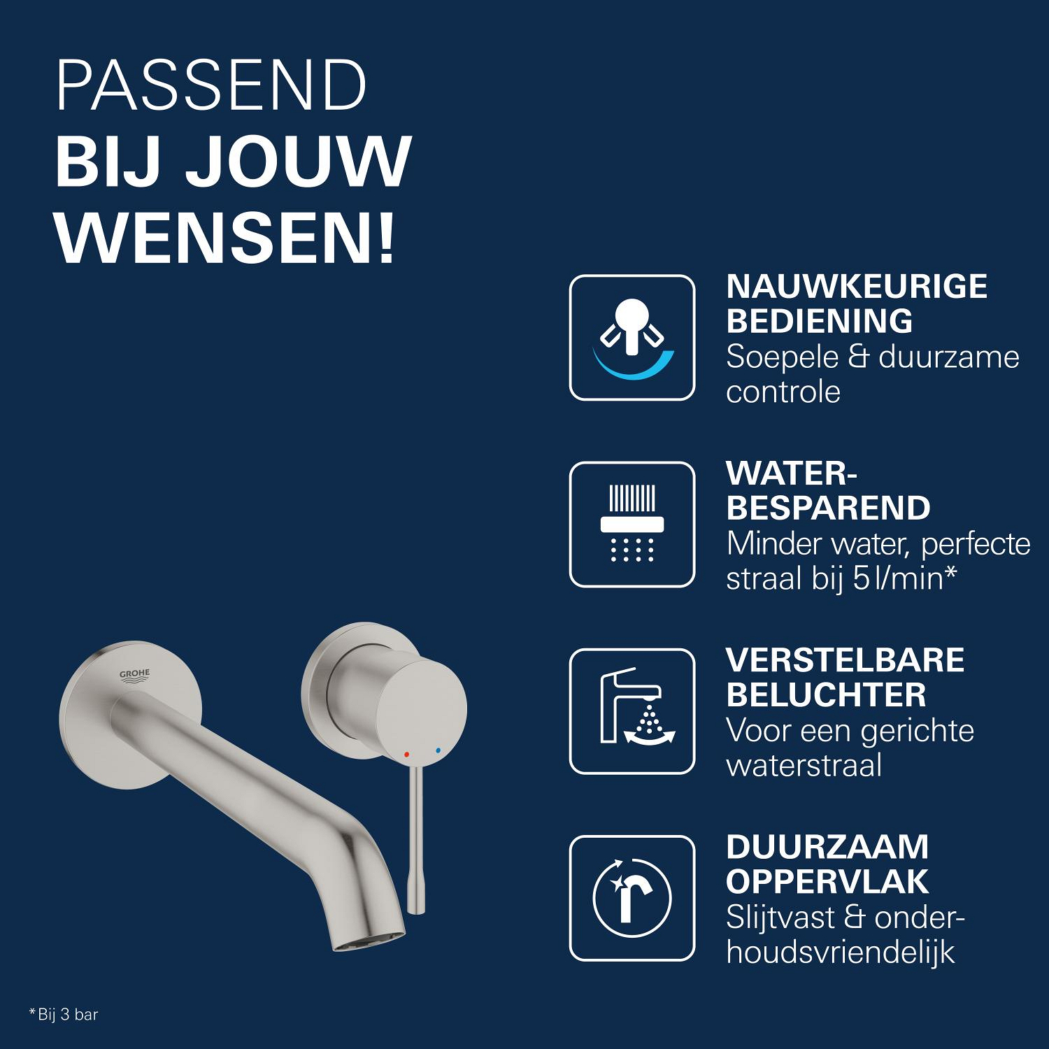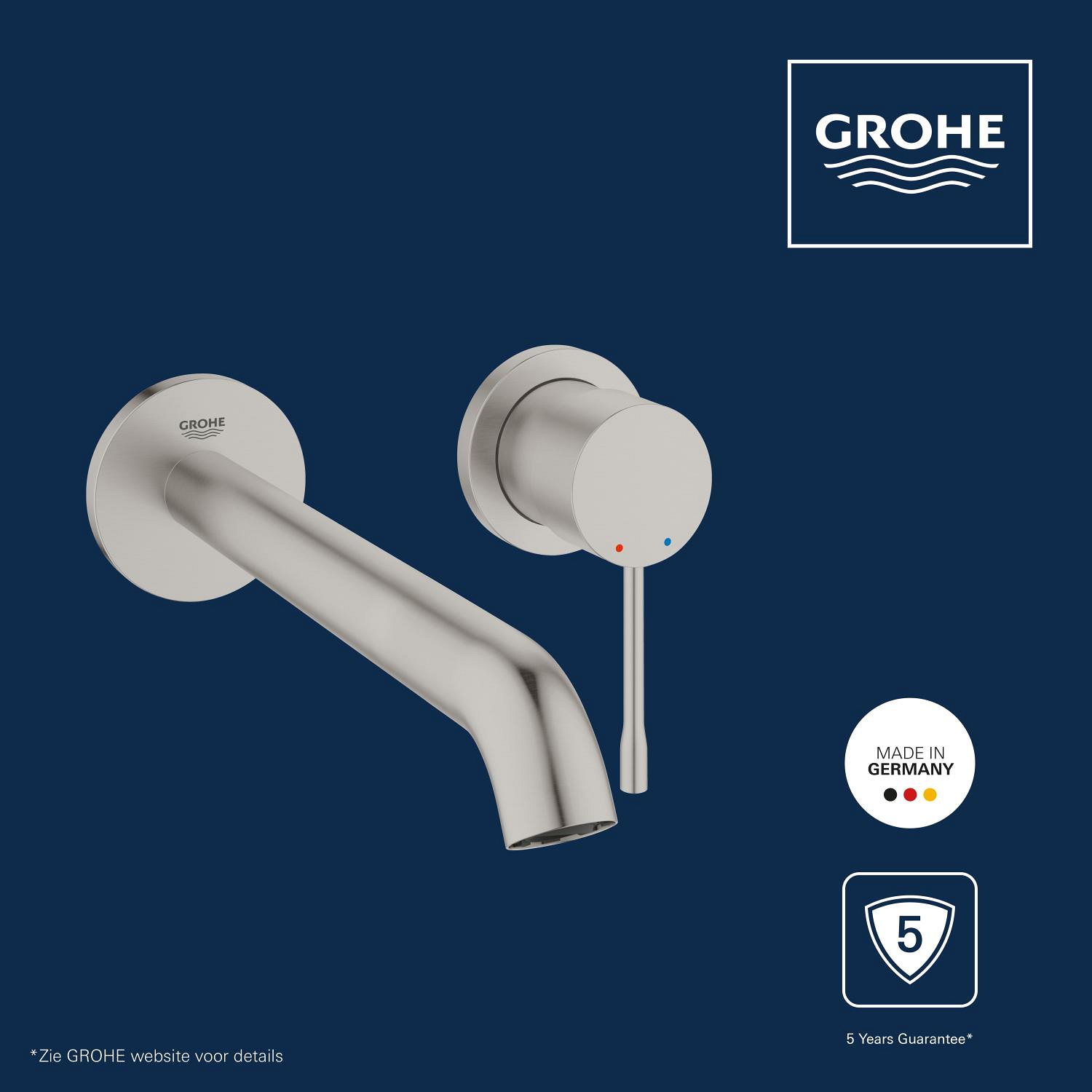 Essence 2-gats wandmengkraan 230mm afbouwdeel supersteel (rvs look) excl. inbouwdeel Grohe