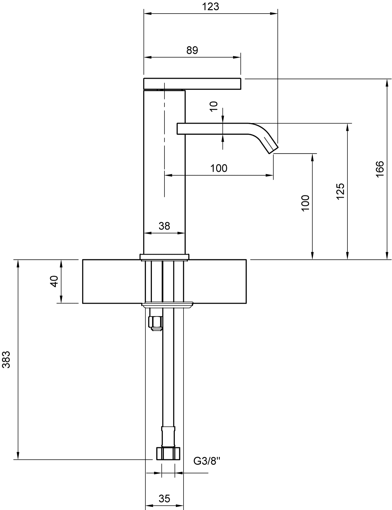 - Opbouwhoogte onderkant kraanmondstuk: 100 mm