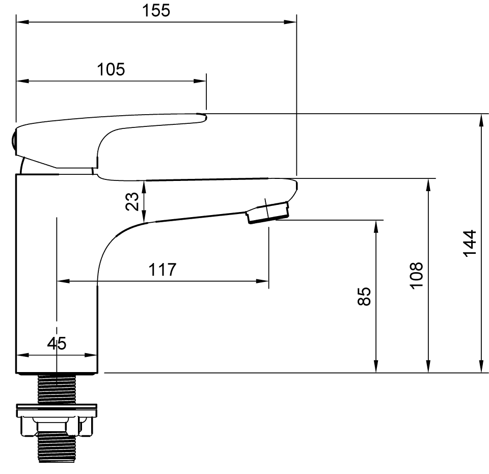 - Opbouwhoogte onderkant kraanmondstuk: 85 mm