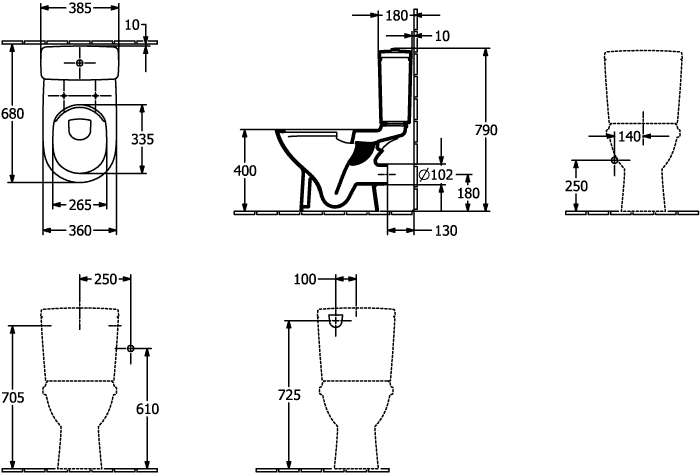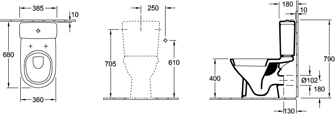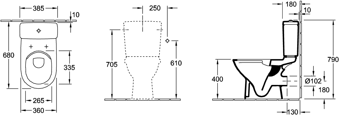 • O.novo closetreservoir wit toevoer RE/LI doorlopend Villeroy & Boch