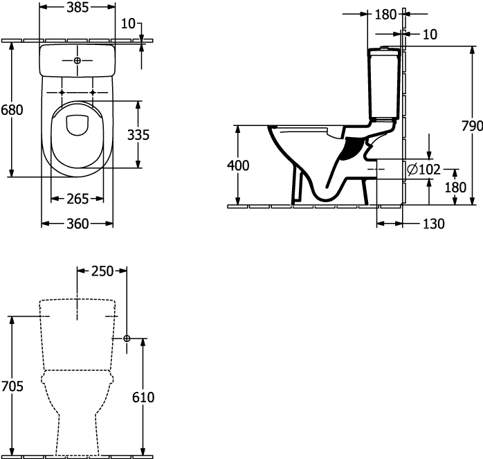 O.novo closetreservoir wit toevoer RE/LI doorlopend Villeroy & Boch