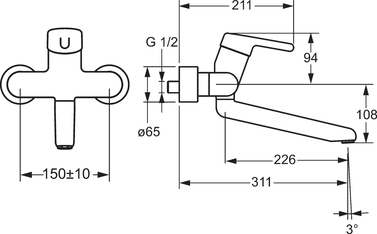 - Voorsprong uitloop: 311 mm