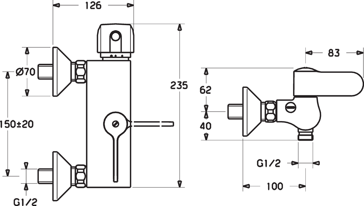 Tempra douchethermostaat 1/2x3/4 chroom m.hendel m.S-koppeling HANSA