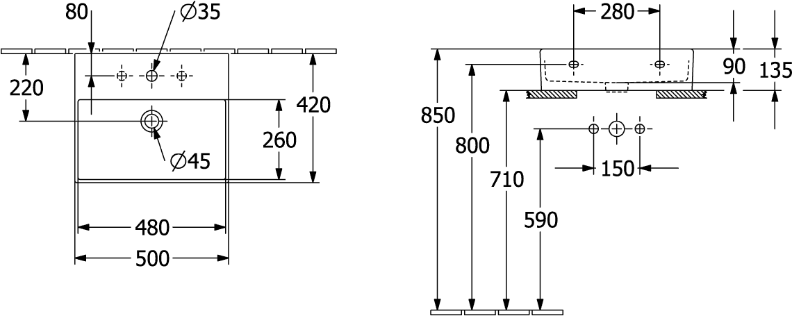 - Aantal kraangaten per wasbak: 1