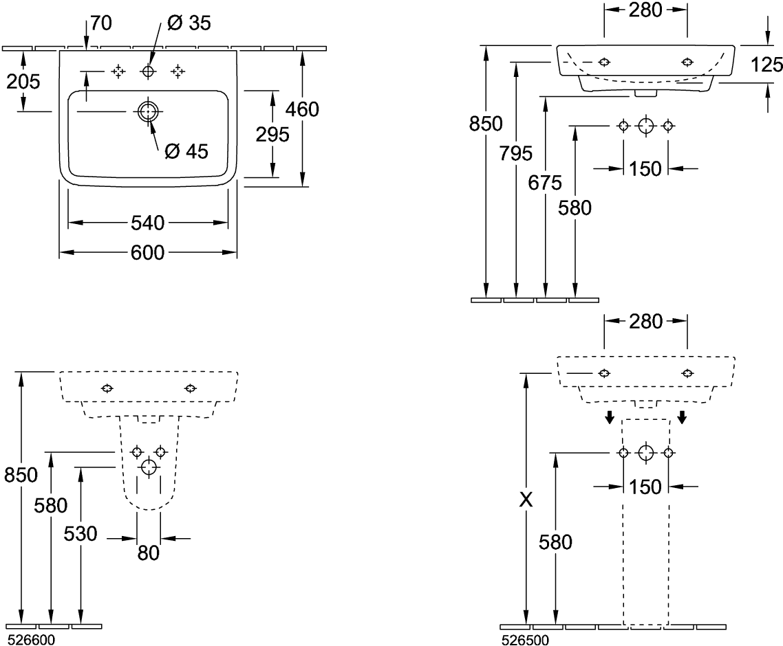 O.novo wastafel 600x460mm wit met kraangat + overloop Villeroy & Boch