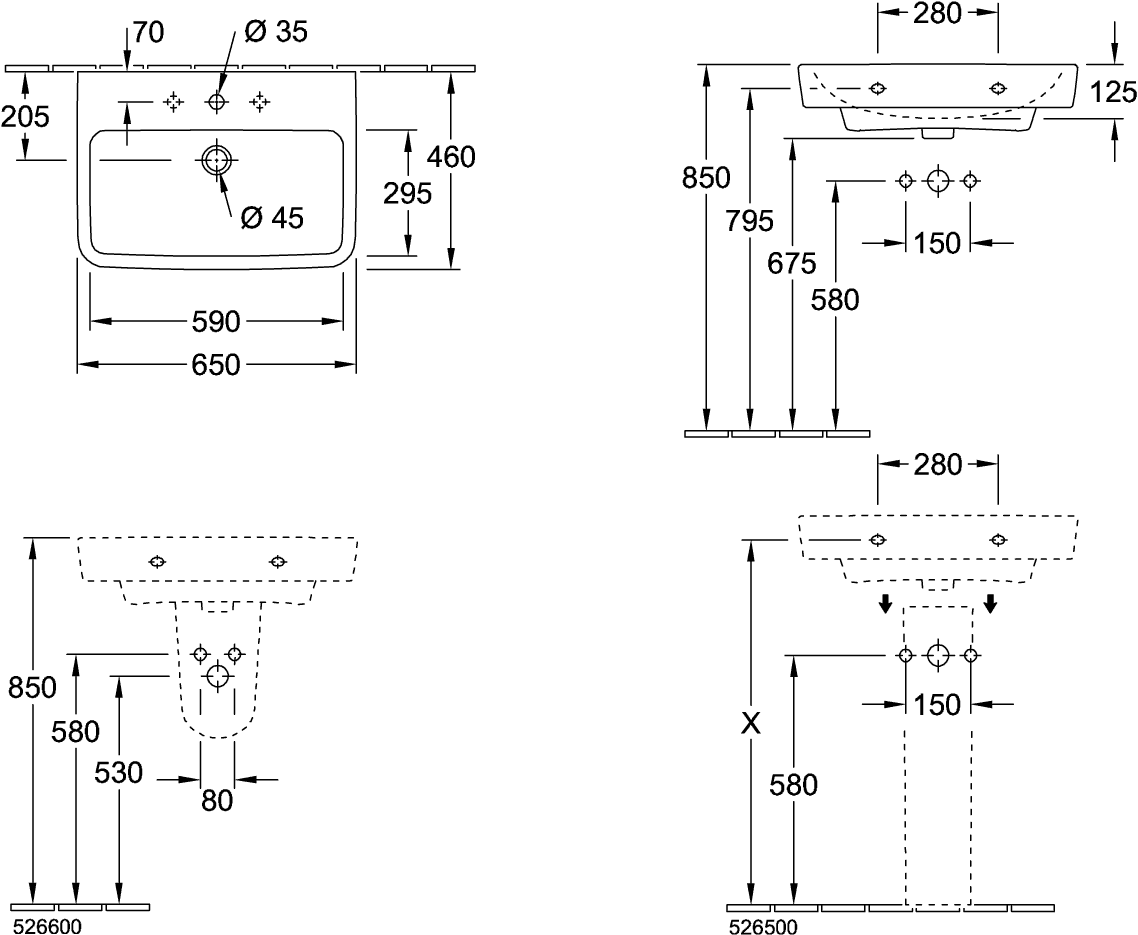 O.novo Wastafel 650x460mm 4A416501 Villeroy & Boch