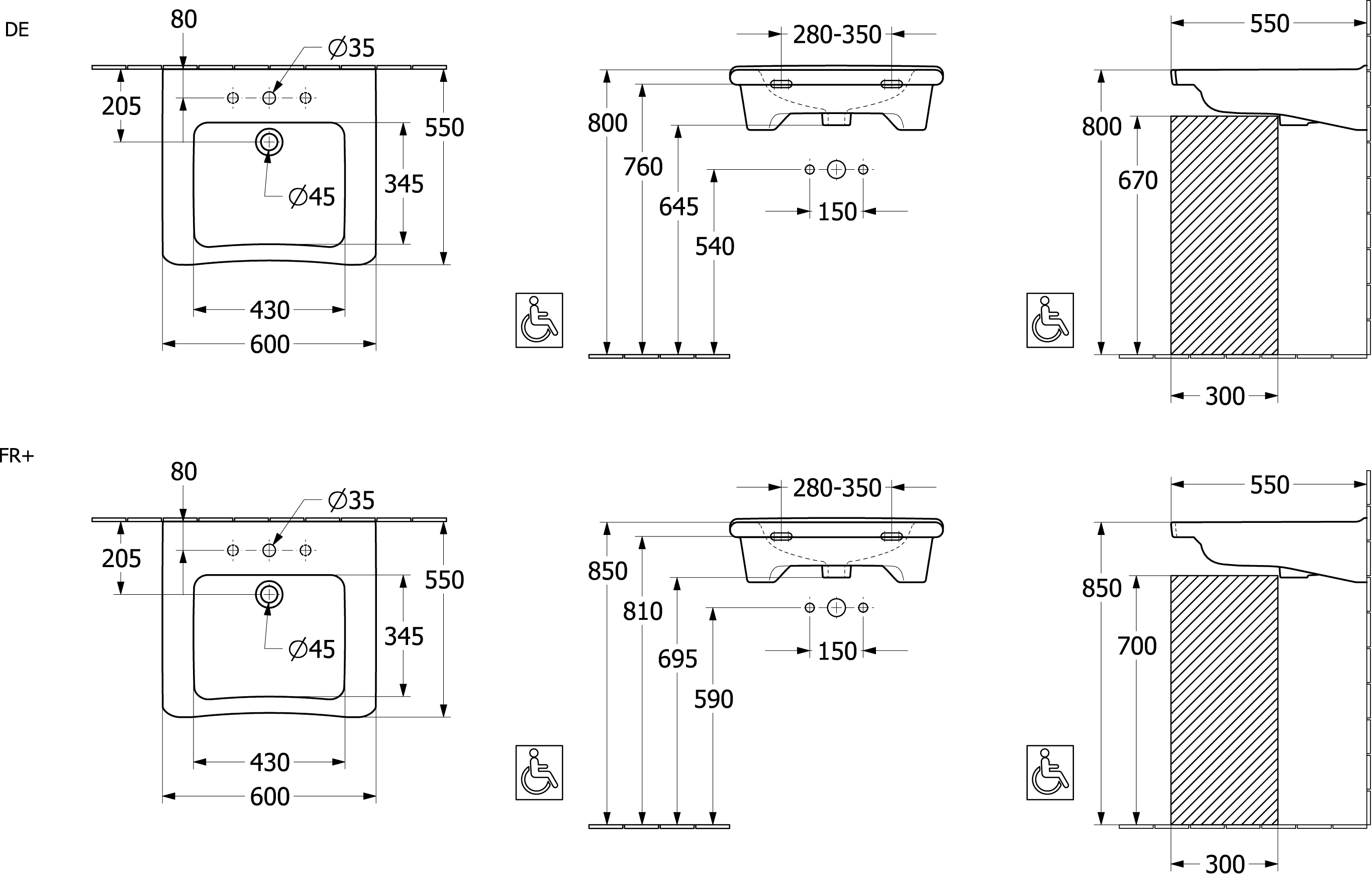- Diepte: 550 mm