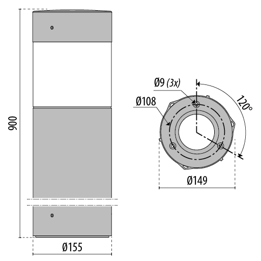 LED-Bollard 3000K 19W stat. cirkelvorm. extra versp. Optiek Performance in Lighting