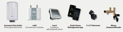Pakket elektr. zonnestroomboiler SUNSMART ONE 120ltr. 150-2950W incl. energieverdeler EDDI + 3x CT-klem Inventum